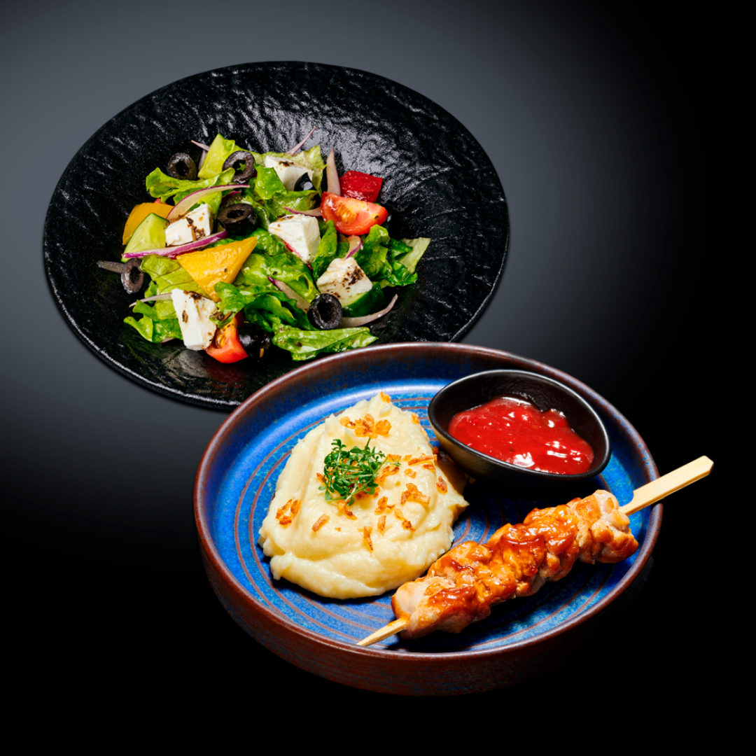 Якитори из куриного бедра с картофельным пюре